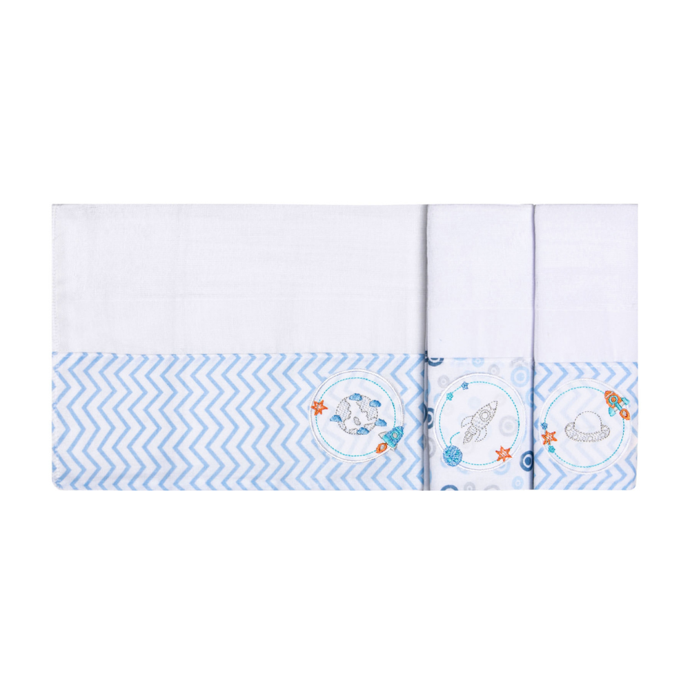 Mantenha seu pequeno sempre limpinho e com um toque de aventura espacial com o Pano de Boca Karinho com Faixa Planetas Azul! Essencial no enxoval, super macio e charmoso. Adquira já o seu!
