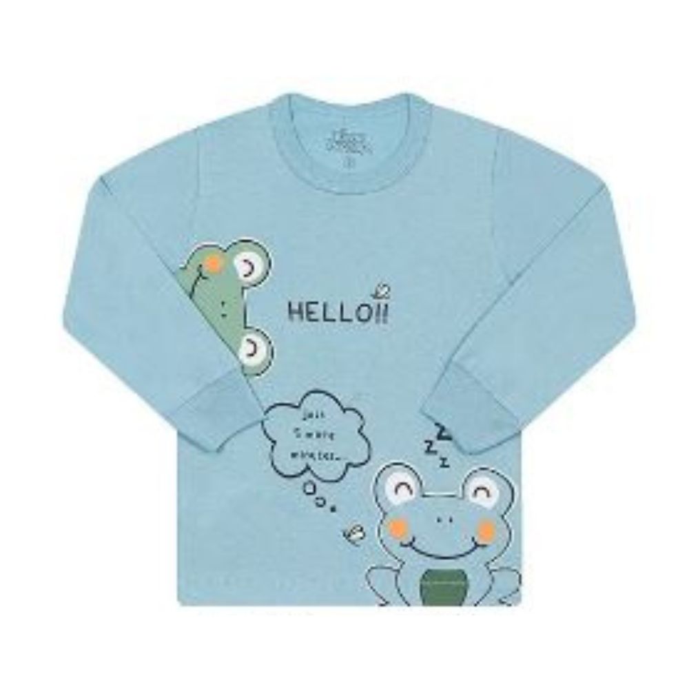 Disponível em uma cor suave – azul bebê – este pijama é uma escolha encantadora para os meninos que adoram uma noite cheia de aventuras e conforto.