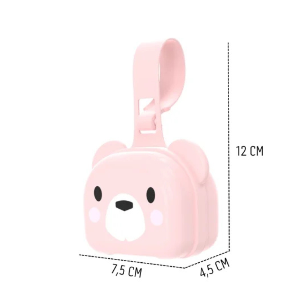 O Porta Chupeta com Alça Plasútil é a solução ideal para manter a chupeta do seu bebê sempre limpa e protegida. Com um design charmoso de ursinho na cor rosa, este porta chupeta é perfeito para o dia a dia, passeios ou viagens. Fabricado em material resistente e atóxico, garante a segurança e higiene do seu bebê em todos os momentos.