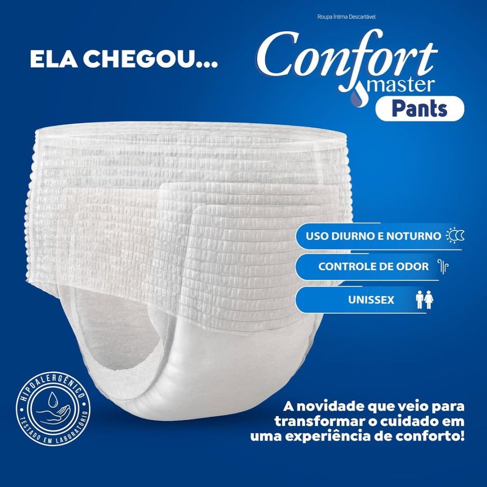 A Fralda Confort Master Pants Roupa Íntima oferece praticidade, proteção e conforto para o dia a dia. Seu formato de calça garante liberdade de movimentos e discrição, sendo ideal para quem busca segurança contra vazamentos sem abrir mão da comodidade.