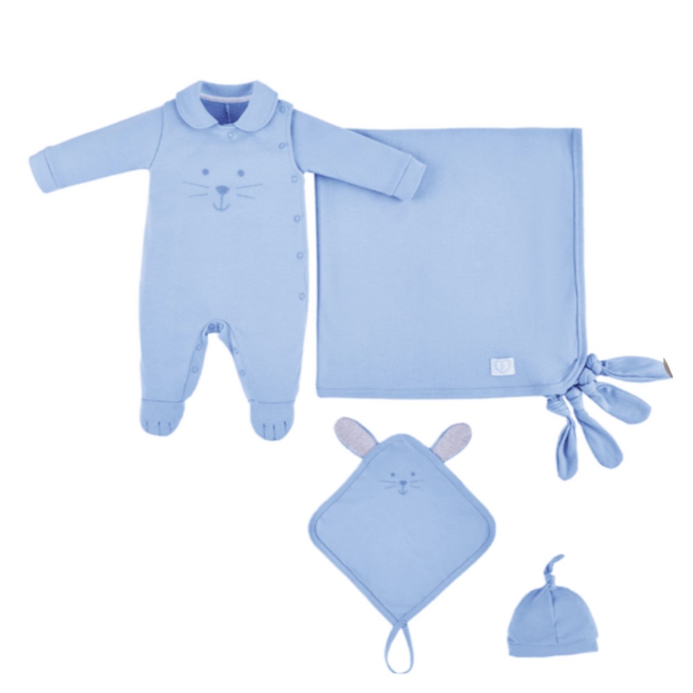Saída De Maternidade Menino Filhote Fofinho Azul 4pçs.