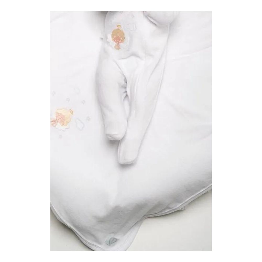 Apresentamos o Kit Saída Maternidade da marca Fofinho, na delicada cor branca com estampa de anjinho. Este kit conta com uma manta e um macacão, ambos produzidos em uma suave mistura de 80% algodão e 20% poliéster.