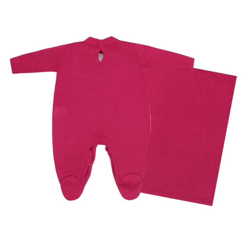 Saída maternidade em tricô na cor rosa red para meninas miniclo.