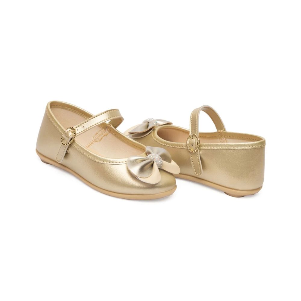 Com um tom de dourado vibrante e um delicado laço, ela adiciona um toque de encanto e sofisticação ao visual da sua bebê, sendo perfeita para passeios e ocasiões especiais.