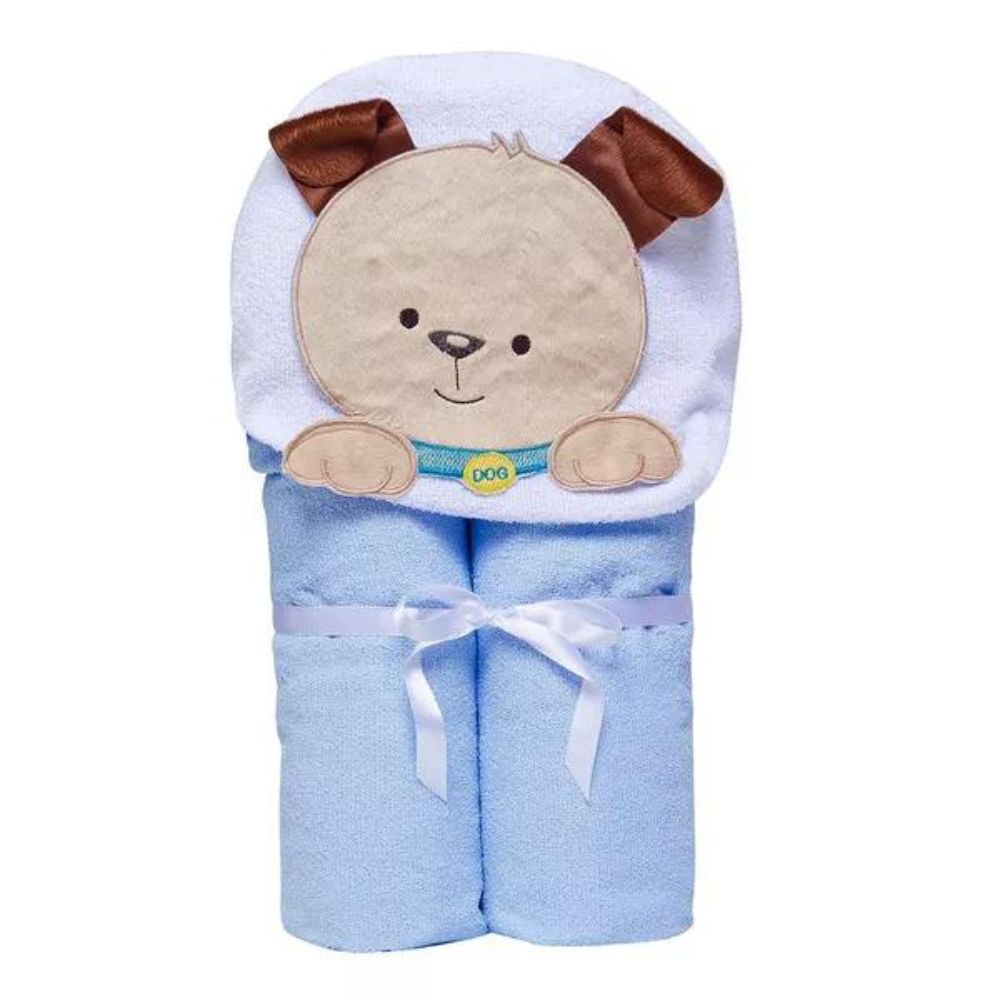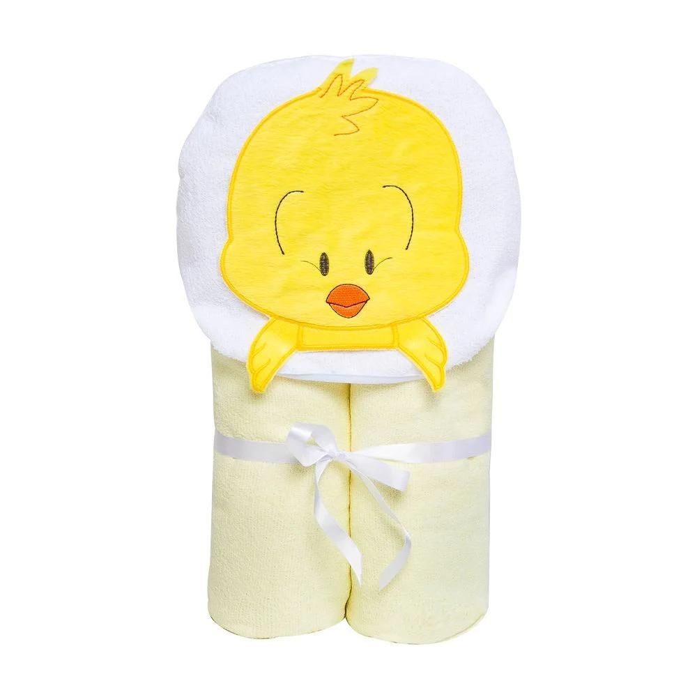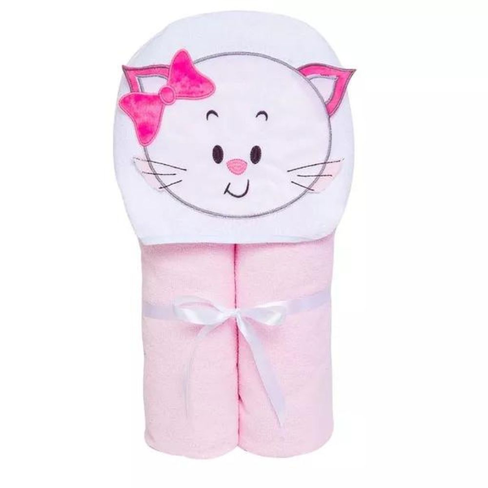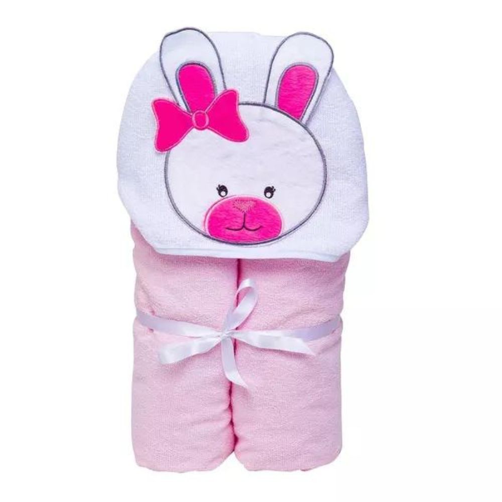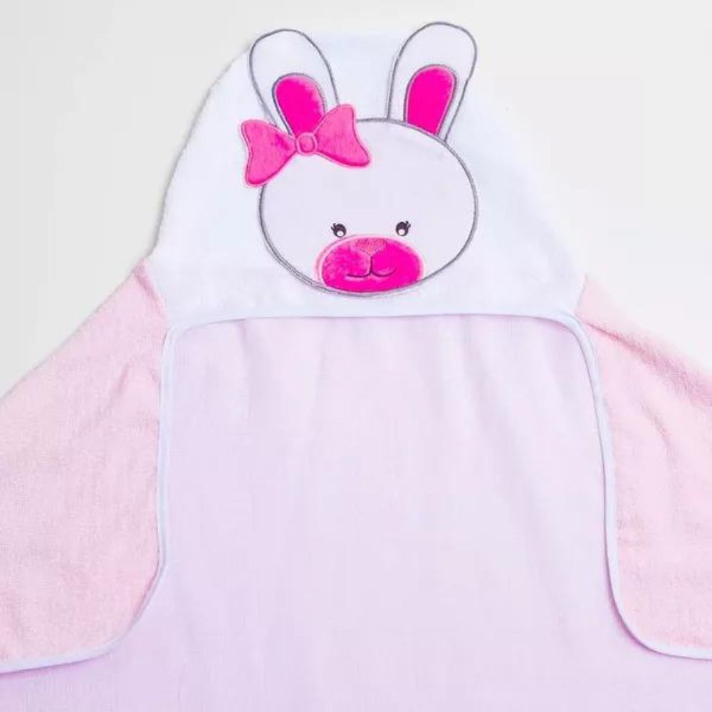 Sua parte externa é de tecido felpudo (toalha) tinto liso, acabamento de viés e seu capuz vem com um rosto de bichinho lindo!