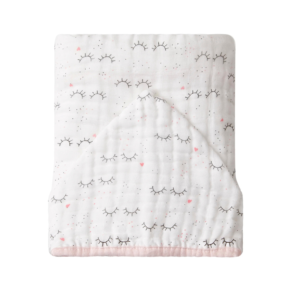 O tecido é fofo e leve, com aparência enrugada, excelente para absorver a água do banho, oferecendo delicadeza na secagem do bebê.