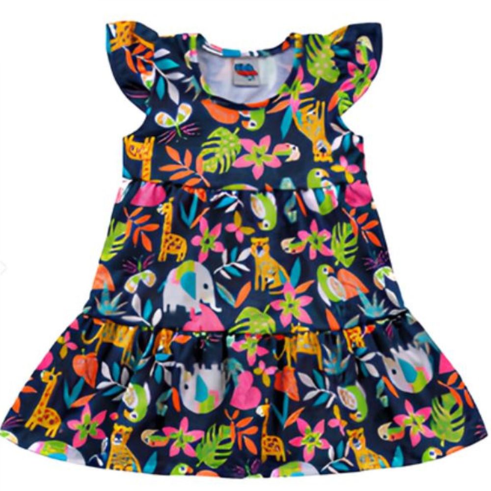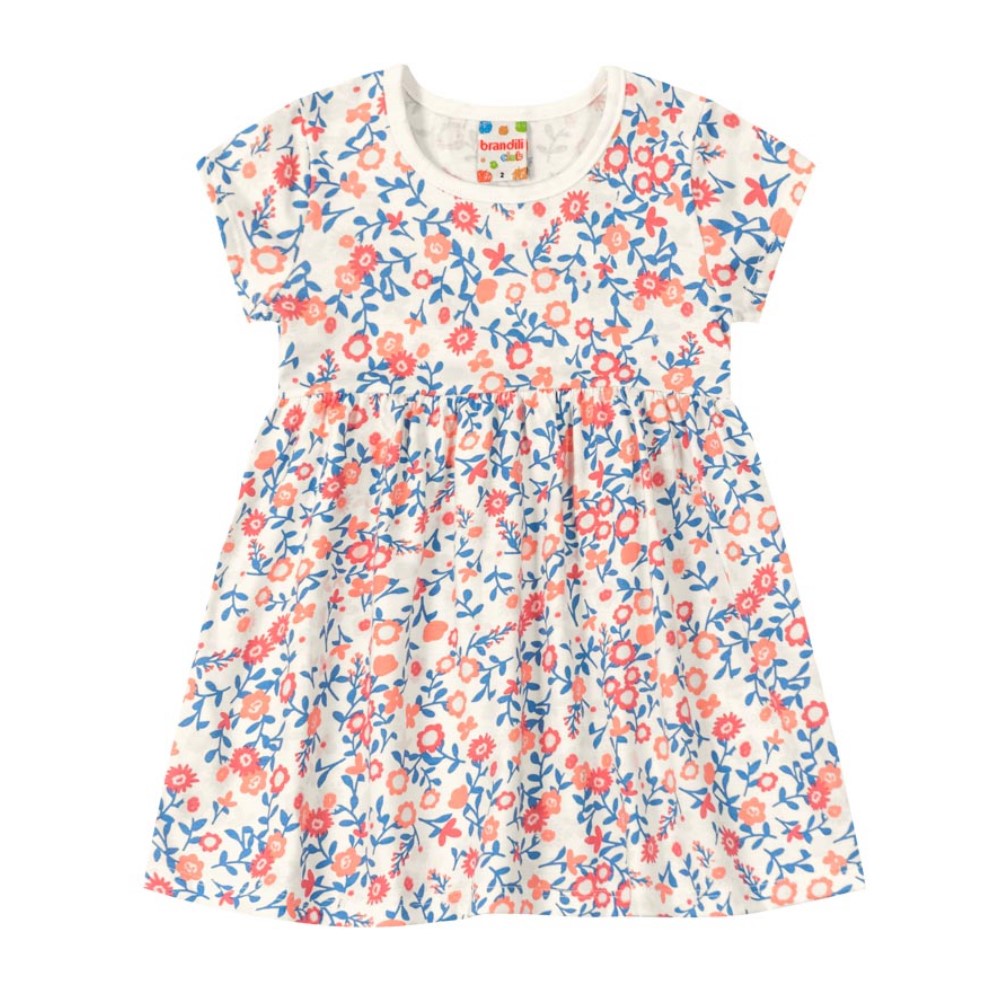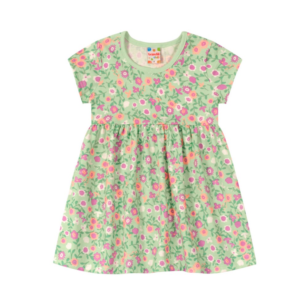 Esse modelo de vestido infantil para meninas é confeccionado em cotton com tecido macio e de alta qualidade, conta com estampa de Flores, possui as mangas curtas e a gola redonda.